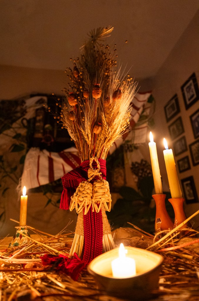 Didukh stays in the house through the winter celebrations, usually until New Year’s or the Feast of Jordan on January 6. After that, it is threshed, the seeds are preserved for future planting, and the rest is burned to release our ancestors back into the spirit world and call for the arrival of spring.