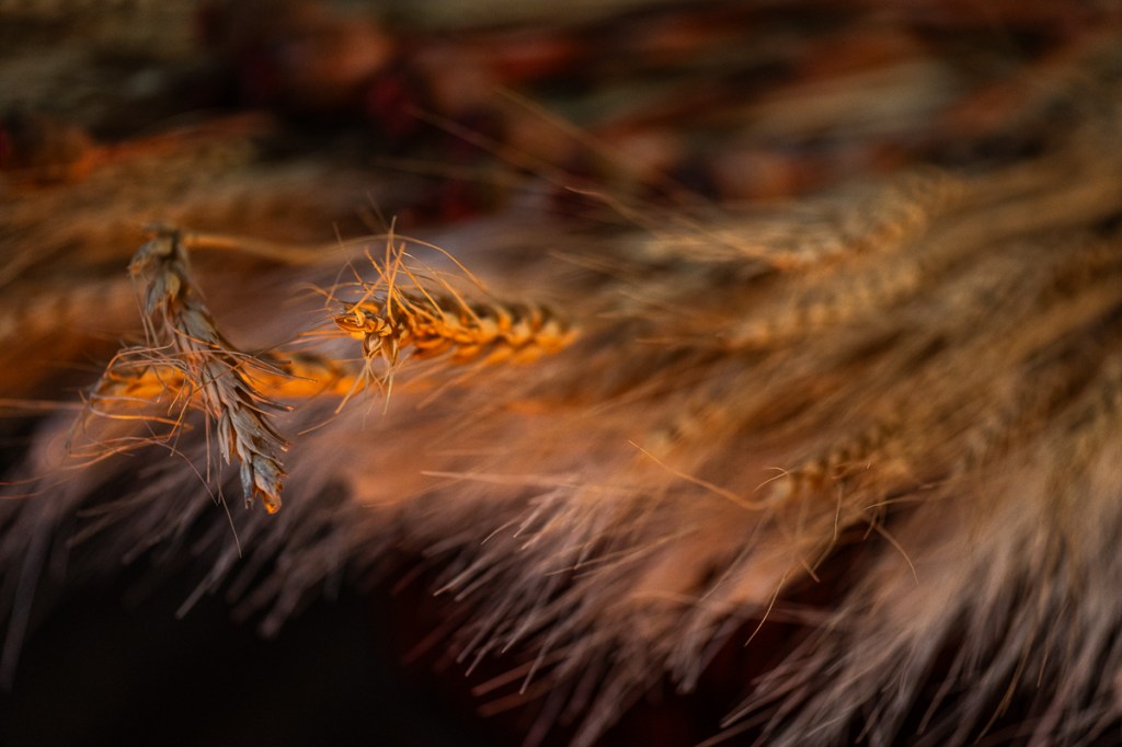 There’s no single way to make a Didukh. Each one is unique and reflects the maker’s preferences and wishes. Some Didukhs are simple sheaves, others are elaborate constructions with multiple layers and branches, which explains its other name – a Bread Tree. There are, however, some basic rules that most Didukh makers follow. First, wheat stalks need to be separated into bunches of seven to signify seven generations, seven days of the week, seven colours of a rainbow.